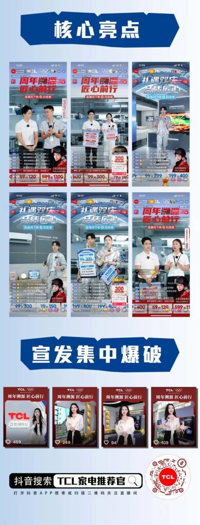 本次TCL周年直播的亮眼成效,离不开仓藤传媒量身定制的三大关键举措,三者协同发力,形成“内容引流—宣发破圈—互动留存—转化闭环”的完整链路,每一步都精准贴合TCL品牌需求与用户痛点,充分彰显仓藤的全链路操盘能力。