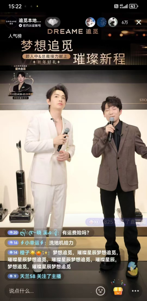 仓藤精准洞察追觅品牌潜力人群与明星颜人中粉丝群体的高度匹配性 —— 二者均以追求品质生活、关注科技潮流的年轻消费群体为主,通过邀请颜人中助阵,借助其粉丝粘性与社交影响力,快速吸引泛年轻流量进入直播间,打破品牌原有用户圈层,为拉新奠定核心基础。