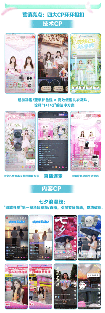 A:一方面,精准匹配生活方式、家居好物等垂类达人,产出场景化体验内容,贴合用户日常需求,提升内容共鸣度;另一方面,发起 #洗烘 CP 新净界 #话题挑战赛,设计互动玩法,激发用户自发传播,同时在内容中植入核心产品卖点与福利信息,实现种草的同时引导转化,兼顾传播力与转化力。