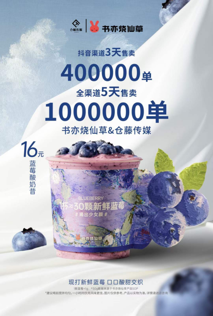 蓝莓酸奶昔:抖音渠道3天40W单,全渠道5天100W单